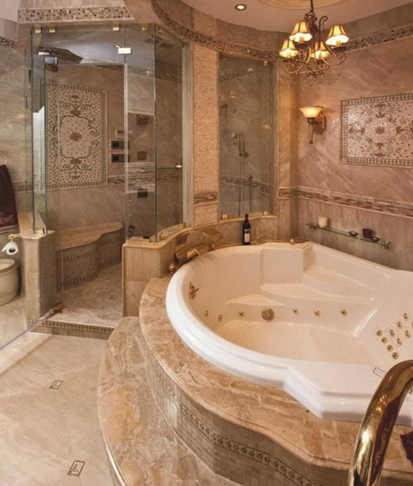 В чистом виде рассматривать эти стили имеет смысл только в том случае, если позволяет площадь ванной. Маленькие и средние комнаты могут не выдержать излишеств. Если вы решили оформиться в таком стиле, выбирайте текстуры, близкие к натуральным — камень, позолота, фарфор и изысканная керамика. Завершающим штрихом станут тяжелые шторы с крючками и ламбрекенами.