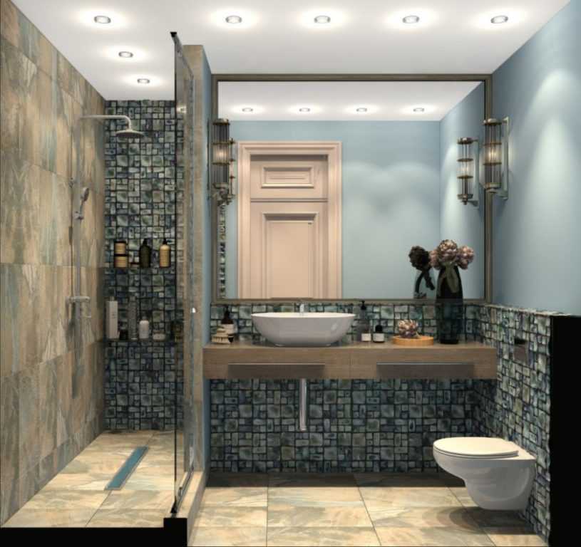 - только при достаточном уровне освещения будет удобно приводить себя в порядок, наносить макияж. Это зависит не только от светильников, но и от насыщенности оттенков стен.