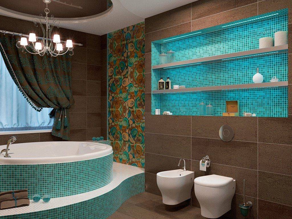 Потолок необходимо отделать плиткой из пенополистирола с водоотталкивающими свойствами. Украсить ванную комнату с окном в частном доме можно мозаикой. Она состоит из частей изображения, которые будут связаны между собой. Чтобы добавить в ванную комнату элегантности, украсьте пол мозаикой. Для роскошного дизайна устройте мозаику на потолке.
