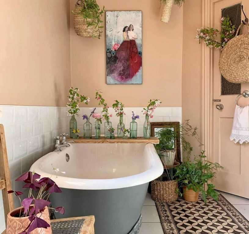Дополнить дизайн ванной комнаты можно комнатными растениями, высаженными в красивые горшки. Красивые комнатные цветы добавят веселья и нового измерения. Это будут этакие городские джунгли.