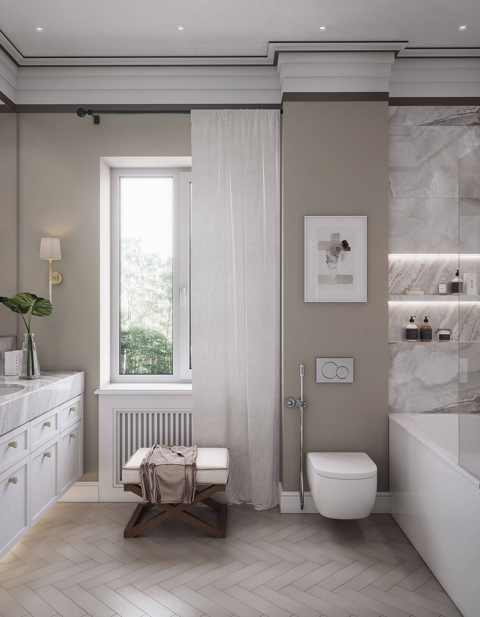 Выбирая, каким цветом покрасить ванную комнату, важно учитывать стиль помещения. Для классического интерьера подойдут золотистые, бежевые тона