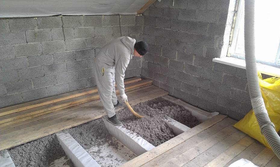 - Засыпают выравнивающую смесь, состоящую из керамзита мелкой фракции, керамзитового песка и других добавок.