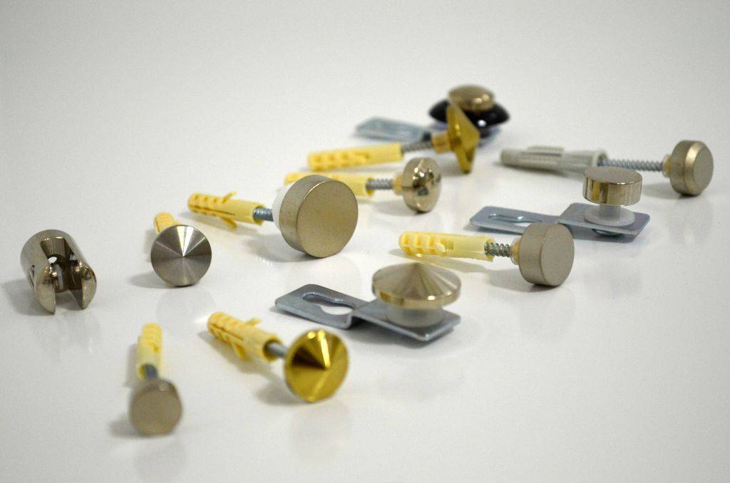 Под декоративные шурупы идут специальные прокладки из резины. Они устанавливаются между стеной и тыльной стороной, а также между самим шурупом и зеркальной поверхностью. Такой способ лучше выбирать при установке шкафа с зеркальной поверхностью.