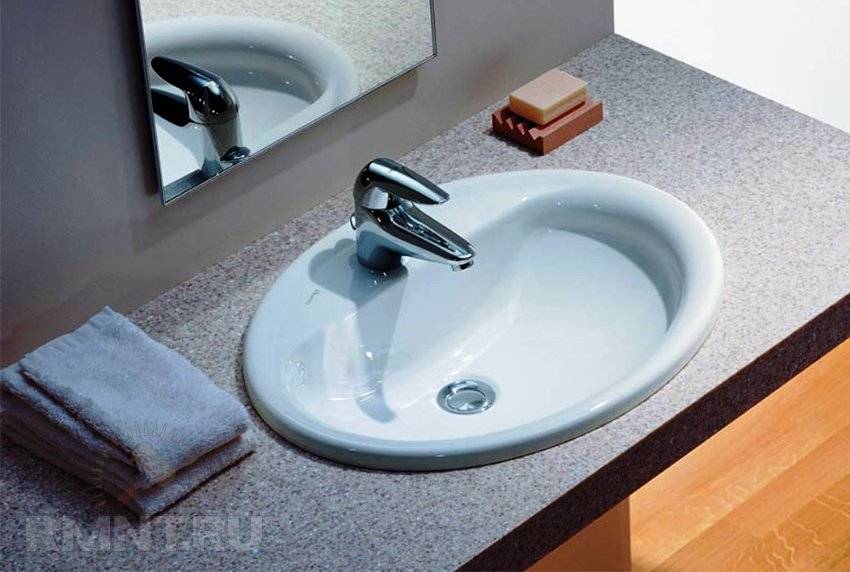 - Встраиваемые раковины – всей своей поверхностью устанавливаются на тумбу или столешницу;