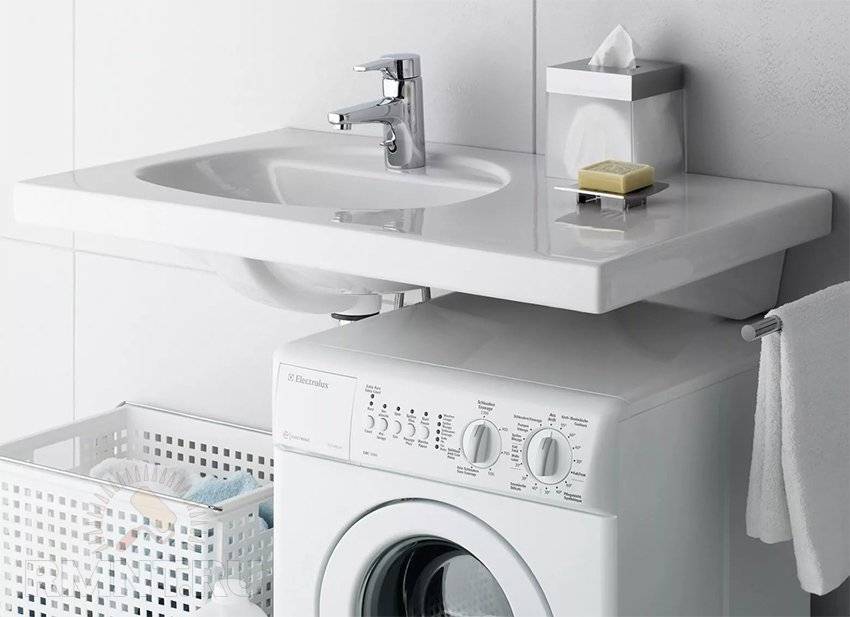 Встраиваемые изделия также можно устанавливать сверху на крышку стола, фиксируя бортиками по периметру основы, либо встраивая снизу в конструкцию. В санузлах, где отсутствует возможность поместить столешницу, имеющую стандартную ширину, удобнее применять полувстраиваемые модели.