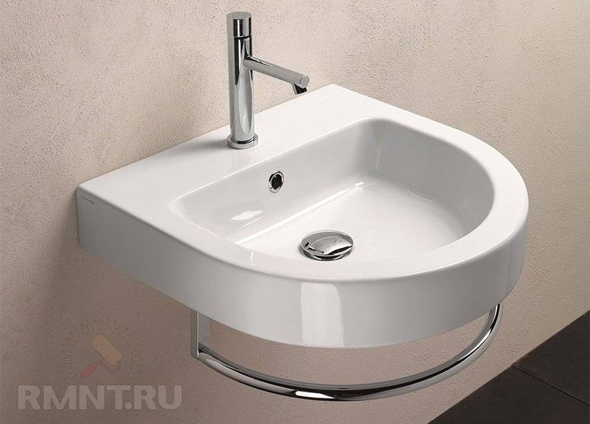 Технология монтажа сантехнического прибора зависит от типа раковины, которые бывают подвесными и накладными, а остальные изделия относятся к их разновидностям.