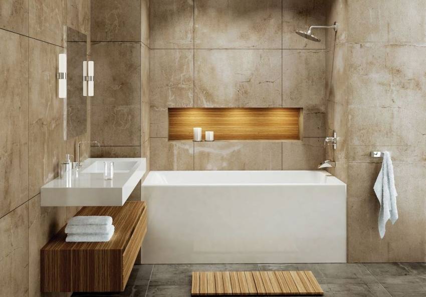 Если в ванной комнате присутствует ниша, ее можно использовать для установки прямоугольной ванны стандартного размера