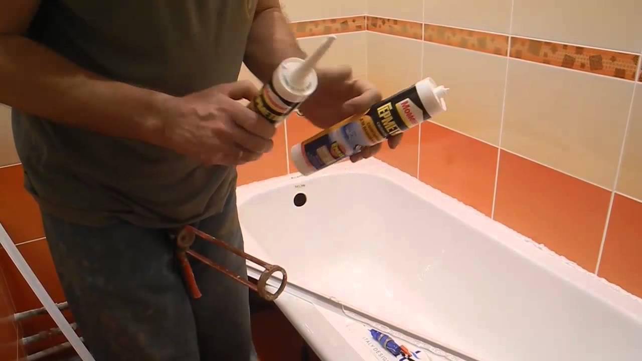 И в этом случае нас выручит силикон. Качественный герметик обладает прекрасной адгезией к ПВХ. Он наносится двумя полосками на стену и полочку ванны, после чего пластиковый отлив, отрезанный по размеру, прижимается к стыку и фиксируется любыми грузами на 15 — 30 минут до схватывания герметика.