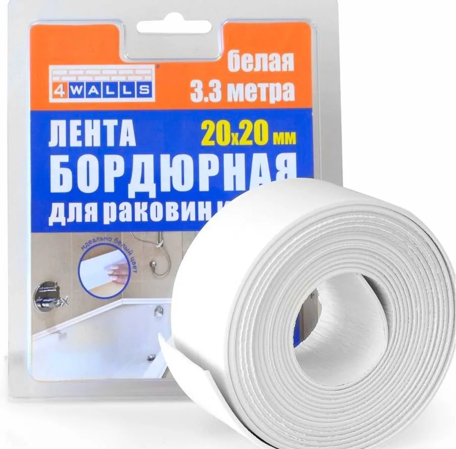Ленточный плинтус для ванны продается в виде самоклеющейся ленты, отсюда, собственно, и название материала. Этот молдинг лучше всего использовать как временный способ заделки швов между ванной и стеной. Плинтус для ванны самоклеющийся — довольно капризный материал. Кажущаяся простота укладки на деле оборачивается серьезной предварительной очисткой поверхностей. Без соответствующей подготовки рабочего поля, лента в процессе эксплуатации будет периодически отклеиваться.