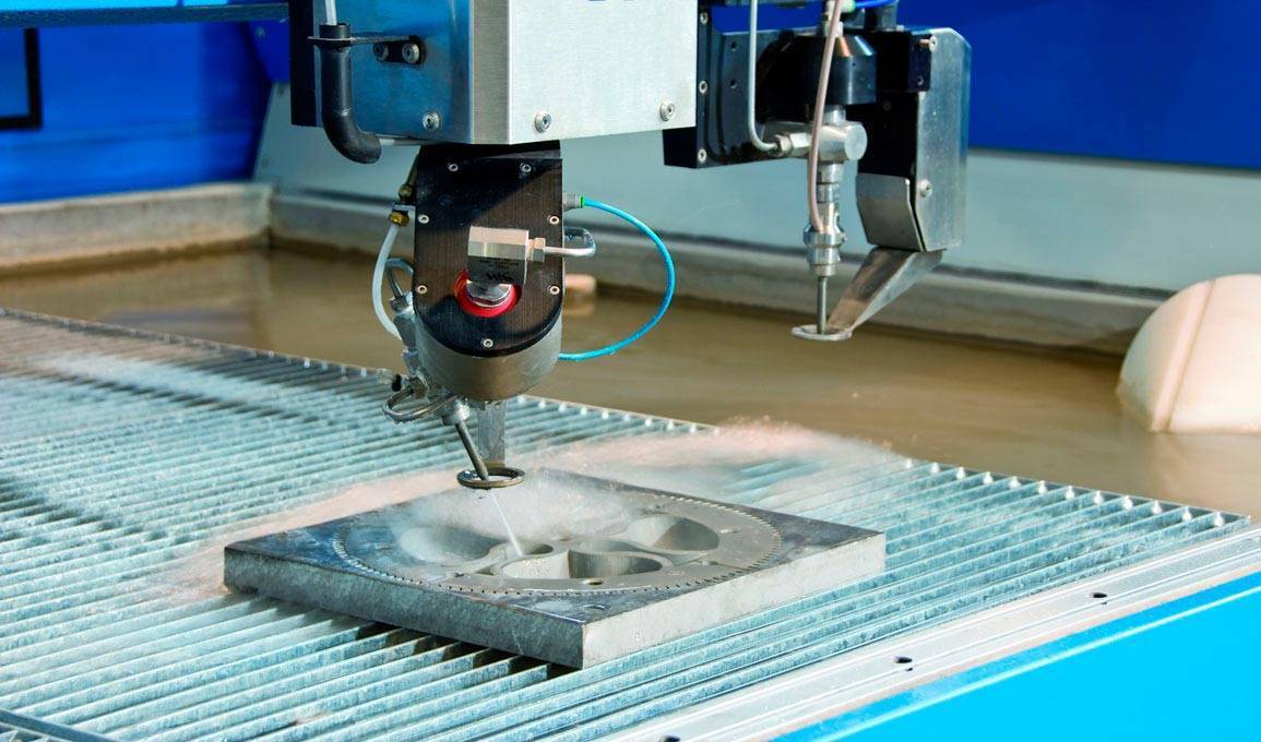 Гидроабразивная резка актуальна для любого материала. Данный метод подразумевает под собой резку путем применения смеси (вода + песок) под высоким давлением.