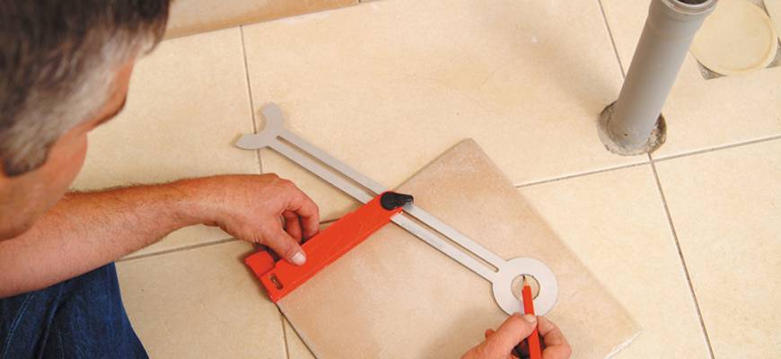 Если на кафеле нужно сделать скругленные отверстия – до 80 мм диаметром, сделать это можно плиткорезом с круговым резаком. Повысить точность резки поможет смачивание заготовки водой.
