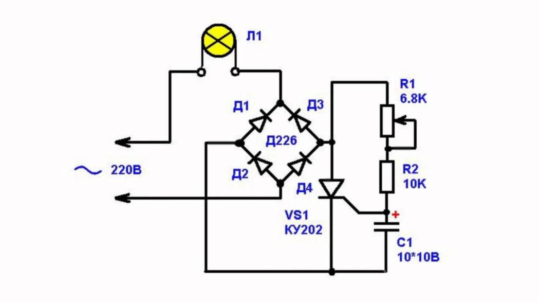 - С2 (конденсатор электролитического типа) предотвращает ламповое мерцание. Кроме того, благодаря медленному разряжению электролита светильник затухает не немедленно, а постепенно.