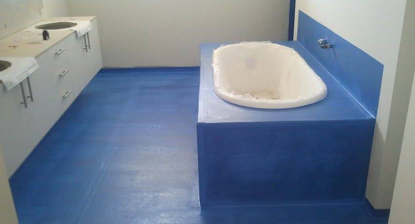 Опытные люди советуют нанести поверх гидроизоляции слой какого-нибудь засыпного материала, обладающего термоизоляционными свойствами. Он будет сохранять температуру набранной воды внутри ванны. После чего сделать заливку стяжки.