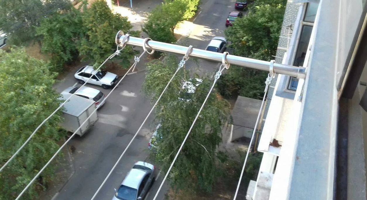 Оптимальный вариант — стационарное устройство, которое предполагает использование веревки либо лески, натянутой между перекладиной. Конструкция является неподвижной. Преимуществом считается отсутствие сложностей во время перемещения по лоджии даже при вывешенном белье.