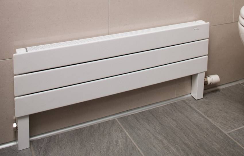 Удобно скрывать элементы системы отопления плинтусом-коробом из пластика, так же, как это делается кабельканалом для электропроводки, проходящим над полом вдоль стены.