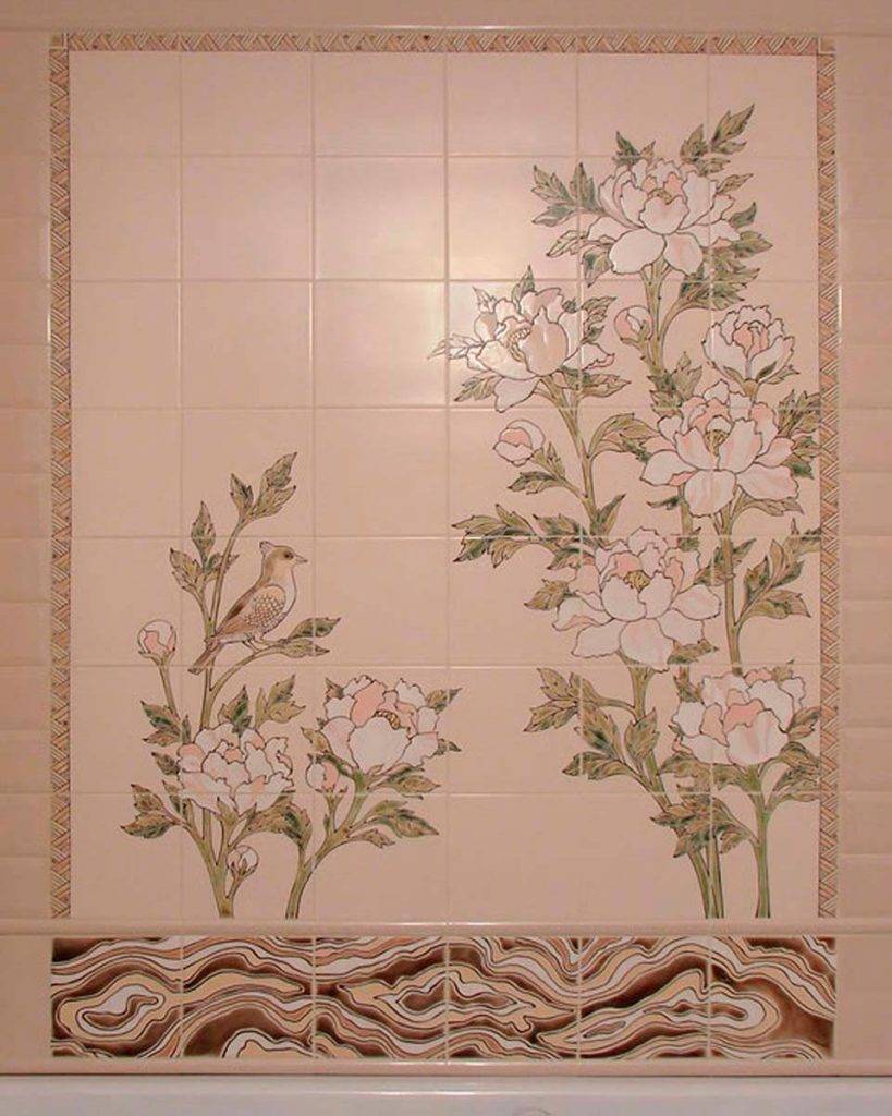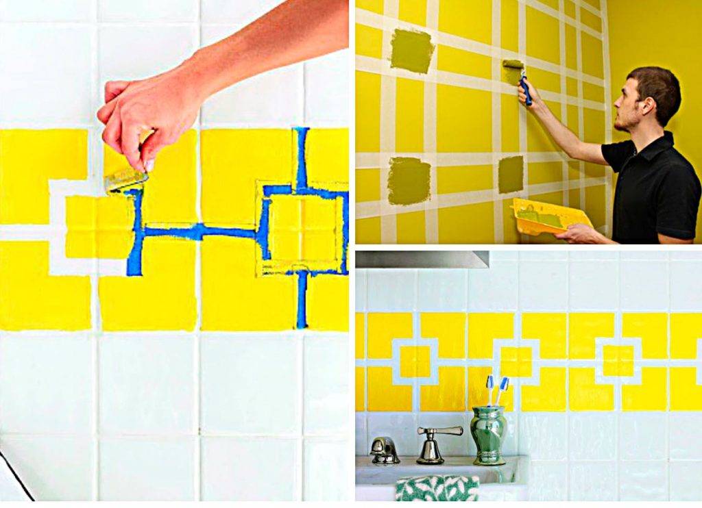 Обновить плитку в ванной можно, нанеся на нее рисунки и узоры красками. Не каждый обладает талантом художника, но это и необязательно. Есть несколько способов нанести узор на стену: