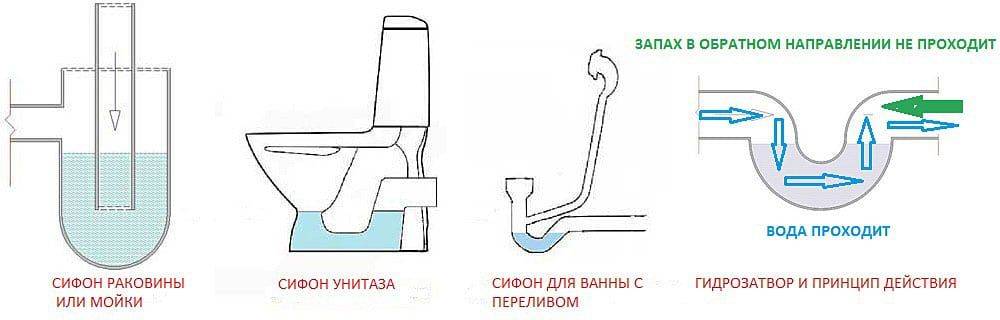 Поясним механизм появления возникновения такого неудобства. В каждом сантехприборе, будь то унитаз, раковина, ванна есть так называемый «гидрозатвор», т. е. водяная пробка предотвращающая попадание воздуха из канализационной трубы в помещение. При сбросе большого количества воды возникает резкий перепад давления в системе, что может привести к выбиванию водяных пробок и затхлый воздух беспрепятственно проникает в дом.