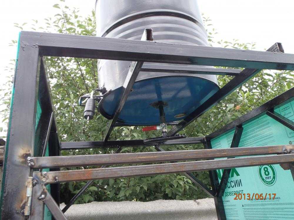 По окончанию сварки все стыки повторно очищаются от шлака и емкость устанавливается в верхней части конструкции летнего душа.