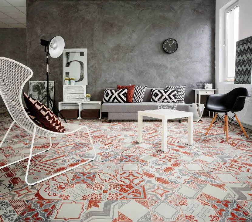 Данный стиль предполагает более яркую разноцветную керамику, дополненную с помощью декоративных вставок, орнаментальные изделия с геометрическими, цветочными, марокканскими узорами или модели с фигурной резкой. Подобный декор в броских красках с чередующимися текстурами и орнаментами, еще больше оживит пространство и задаст ему особого настроения.