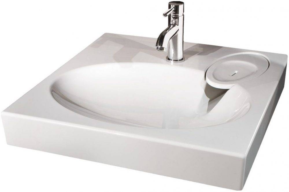 - Встраиваемые конструкции. Их монтируют в накладную столешницу. Они похожи на известного Мойдодыра из мультика. У них классический размер, который связан с параметрами мебели. Сам столик, чашка могут быть крупные и занимать все пространство столешницы. Существуют раковины по габаритам меньше, чем столешницы, тогда свободное место используют для своих целей. Например, хранят стаканчики со щетками и пастой, ставят мыльницу или дозатор с жидким мылом. Такие модели изготавливают согласно санитарным нормам, и у них стандартные размеры высоты. Также можно заказать мойку, чтобы изготовили под нужные параметры. Тогда габариты столешницы будут приемлемы.