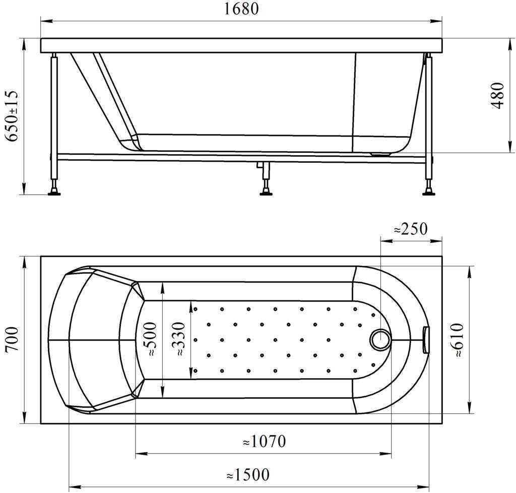 Акриловая. Легкая по весу, удобная в установке, имеющая очень изящный дизайн — это плюсы. Минус в том, что при неправильном уходе или больших нагрузках быстро портится, хотя и легко реставрируется. Не подходит для людей с большим весом, т. к. имеет способность деформироваться. Зато неплохо сохраняет тепло набранной воды. Опоры крепятся под низом. Устанавливать посередине помещения не рекомендуется из-за ее легкости и неустойчивости. Если же хочется ее видеть только посредине, тогда используют специальный подиум, на который ставят ванну.