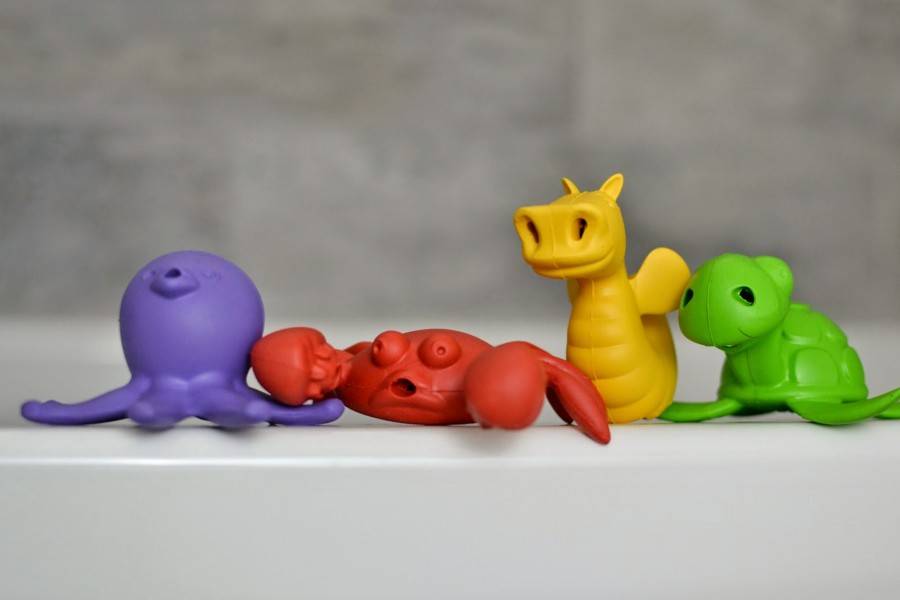 Они должны быть экологически чистыми, без токсических примесей и неприятного запаха. К тому же, не стоит давать ребенку игрушки, которые линяют при взаимодействии с водой и теряют свой изначальный цвет.