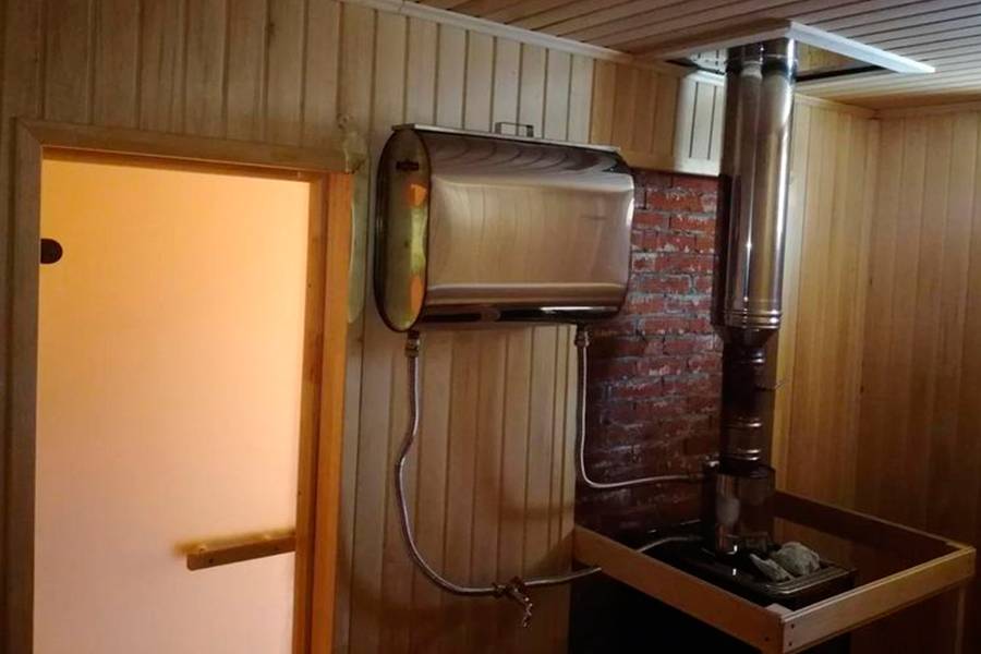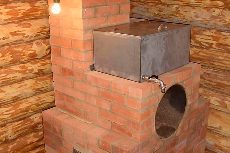 - Ширина и длина резервуара не может превышать параметры печи, и объем воды, которую можно в него залить, ограничен. Это делает невыгодным применение такой конструкции для большой компании людей. Такая конструкция больше подходит для семьи из 2-4-х человек.