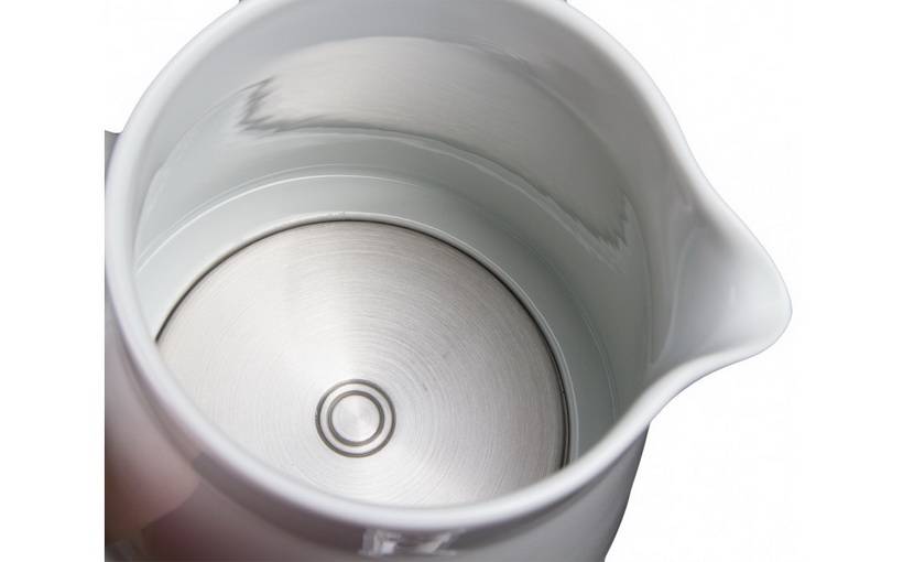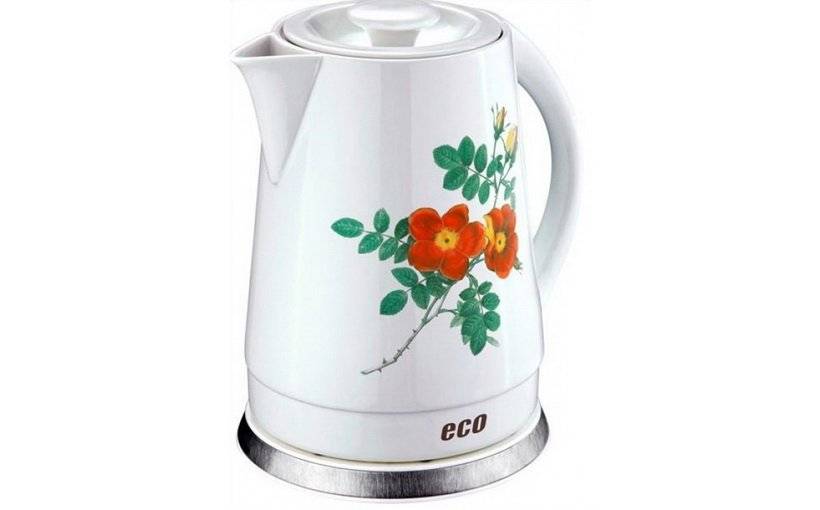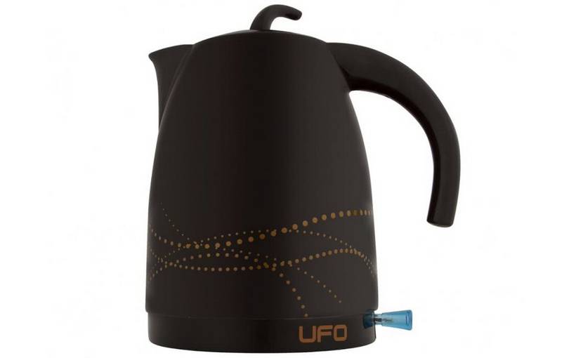 UFO Eco CW18C. Этот доступный керамический электрочайник имеет такой же литраж и мощность, как и UFO CW-18E, но он – белый. Украшает корпус цветок. Модель подойдет для классического интерьера.
