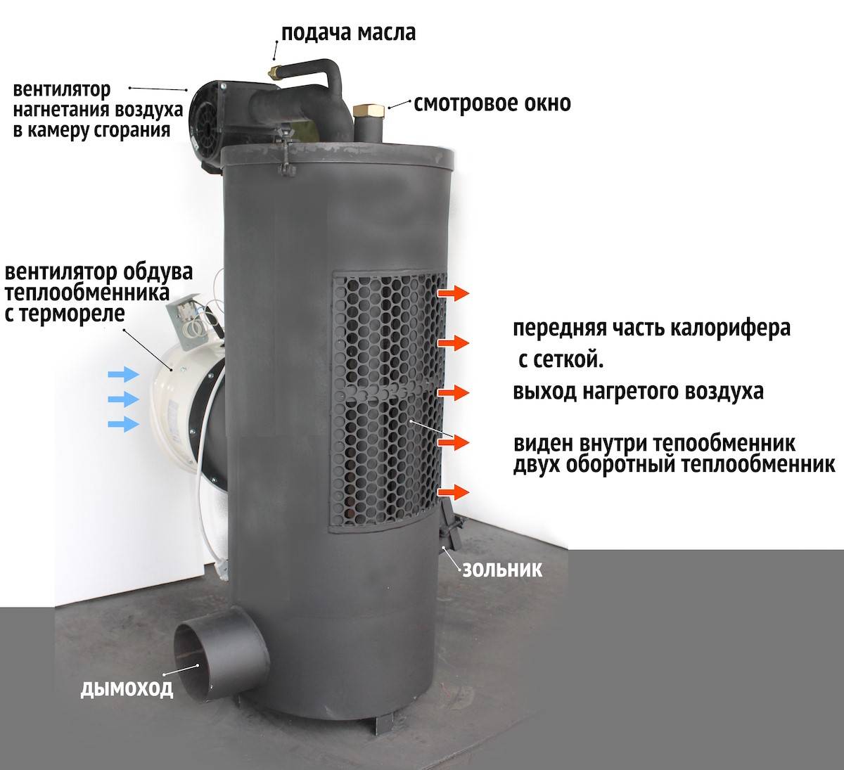 Такой вариант появился не так давно, используется зачастую в гаражах автосервисов, где отработанное масло «водится» постоянно. В принципе, этот продукт нужно утилизировать, а так получается убить двух зайцев одновременно. На отработке можно добиться тепла, если использовать ее в специальных установках.