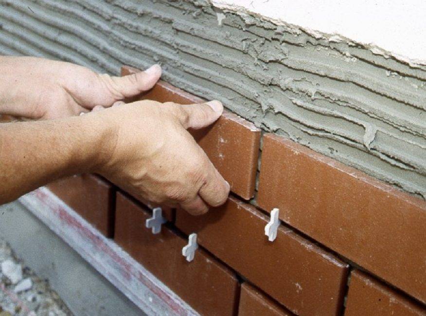 Конечно, этот способ нельзя назвать экономным, зато поверхность с плиточным клеем вместо стандартной гипсово-цементной штукатурки обеспечит отличное сцепление с будущей клинкерной плиткой (одна из самых тяжелых разновидностей декоративного материала). В целях сокращения трат можно обработать веществом только ту поверхность, на которой планируется укладка плитки.