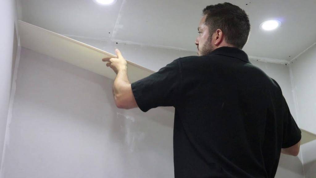 - Монтаж фиксирующих механизмов. Используйте уровень, чтобы укрепить багеты. Прикрепите их к стенам с помощью саморезов.