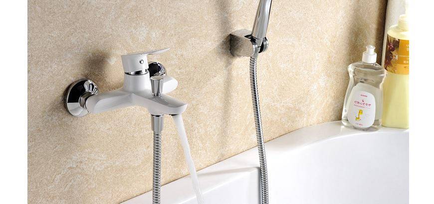 Хорошим вариантом для ванной будет однорычажный кран с коротким изливом. Устройство этого прибора позволит быстро набрать воду в ванную, а при необходимости при помощи специальной кнопки воду можно переключить на душ. Дополнительно производитель эту конструкцию может комплектовать штангами, при помощи которых можно душ повесить на стену.