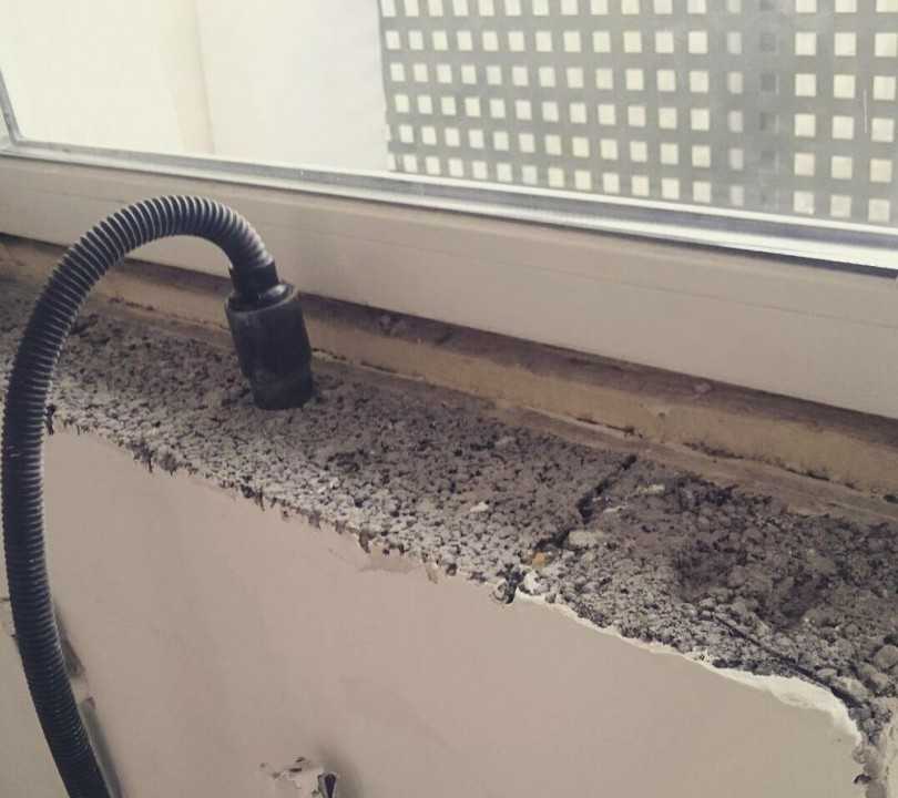 - По боковым сторонам оконного проема (ниже откосов) надо сделать прорези (штробы), куда встраиваются края подоконника, чтобы он был лучше зафиксирован и не сорвался;