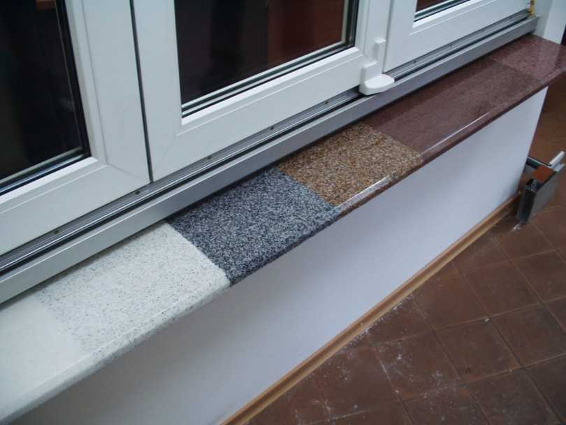 Из кварцевого камня. Кварцевая крошка, составляющая 90–95 % массы изделия, связывается полиэфирными смолами. Технологический процесс предусматривает добавление минеральных красящих пигментов (соединения железа, сурик, охра). Такой подоконник более тяжелый и плотный, но возрастает риск появления сколов.