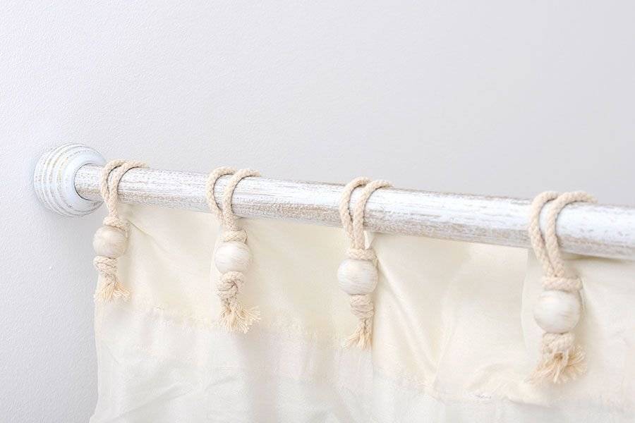 После того, как монтаж подвеса будет закончен, останется лишь повесить выбранную ранее занавеску. Если кольца для нее имеют разъем, то их можно повесит после процесса установки, а если они цельные, то надеть кольца на трубку следует еще до установки устройства. Этот момент нужно обязательно учесть.