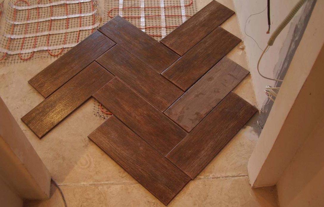 Укладка напольной плитки под дерево может осуществляться одним из следующих методов: