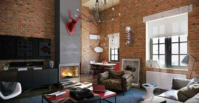 Кладка из данного материала является визитной карточкой стиля лофт. Он появился после того, как в связи с кризисом фабрики и другие промышленные помещения стали переделывать в жилые дома. Постепенно такое оформление начали применять и в обычных квартирах. Причем не обязательно нужно использовать дизайн на всех стенах, достаточно выделить одну или несколько зон, которые поддержат эстетику заводского цеха или склада. А дополнить образ помогут трубы и светильники в алюминиевых плафонах.