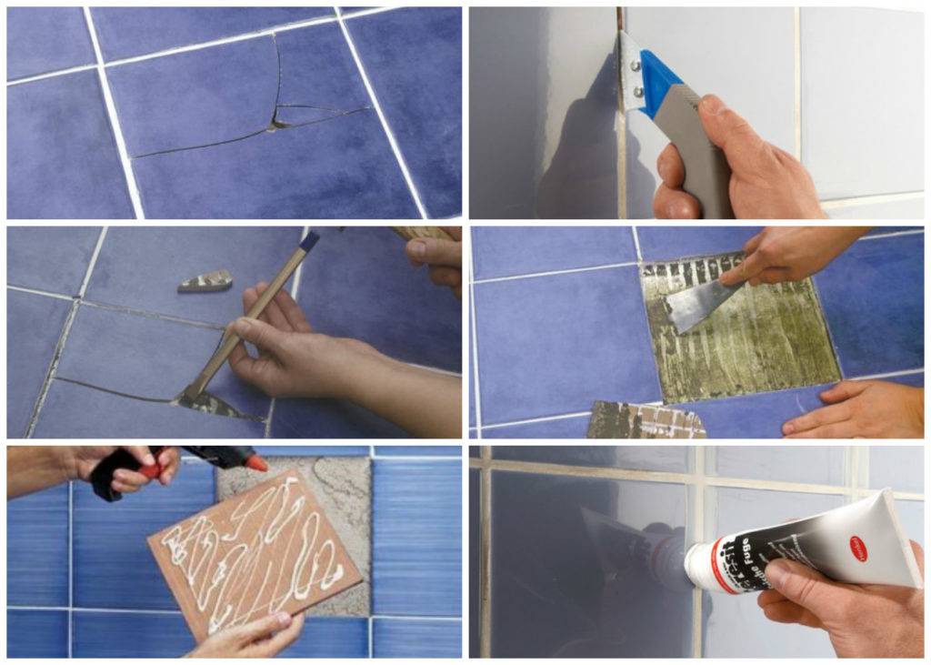 Трудности в замене поврежденной плитки. Трудности заключаются в том, что подобрать идеально цветовую гамму плитки практически невозможно. Одна и та же плитка из разных партий, одного и того же производителя, будет отличатся в оттенке цвета и заметно выделятся среди старого ряда. Второй трудностью является демонтаж поврежденной плитки. Ее необходимо отбивать от черновой поверхности стены или пола, к которой плитка прочно приклеена окаменелым плиточным клеем. И при этом, нужно не повредить хрупкие соседние плитки.