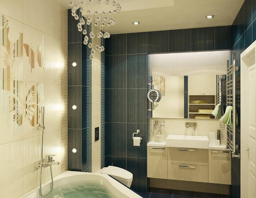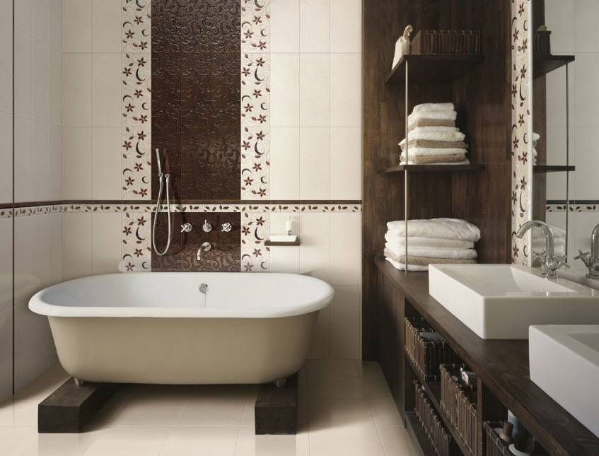 На данный момент самой оригинальной и необычной идеей становится изображение природы на поверхности плитки. Подобное панно позволяет создать уютный интерьер с ноткой загадочности. Кроме того, большую роль играет метод укладки плитки, ведь здесь можно экспериментировать, что позволит создать собственный дизайн ванной комнаты, не похожей на другие, фото которых представлены в нашей статье. Для оформления помещения лучше всего использовать плитку нескольких цветов, создавая яркие пятна или плавные переходы. Не теряет популярность мозаичная плитка, позволяющая оживить интерьер, как маленькой, так и просторной ванной комнаты.