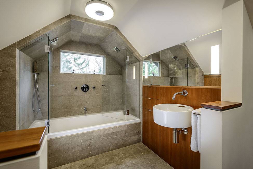 При создании дизайна ванных комнат можно использовать каменную плитку (на фото можно посмотреть интересные идеи оформления). Камень относится к экологичным материалам. Использование новых производственных технологий способствует снижению цены на данный материал. Применение уникальных текстур позволяет создавать стильные решения для дизайна. Подобный материал меньше обрабатывается, чем керамическая плитка. В некоторых случаях камень может потрескаться или поддаться механическим повреждениям.