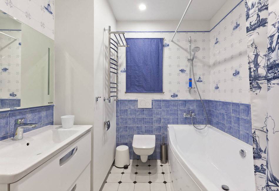Не теряет своей популярности морская тематика, для оформления которой используют оттенки синего цвета, песочный оттенок. При грамотной реализации идеи получается интерьер, напоминающих берег моря, что позволяет расслабиться, забыв о работе и прочих проблемах трудовых будней. Интенсивность окраса выбирается исходя из вкуса владельца жилья. Однако необходимо помнить, что яркие оттенки создают холодный интерьер, а это негативно сказывается на создании уюта.
