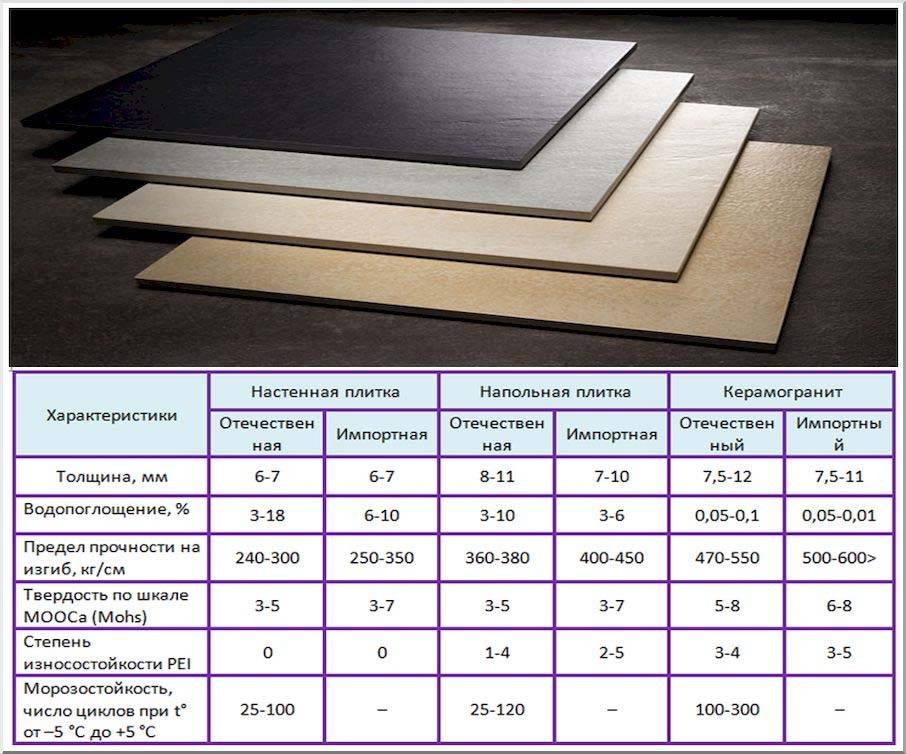 Основные технические характеристики керамогранита