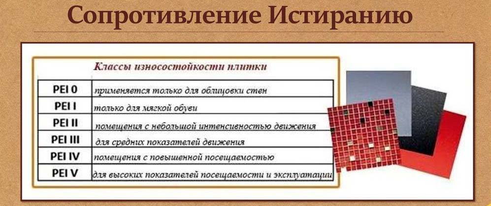 Поэтому класс истираемости в этом случае очень важное качество. По таблице PEI есть пять классов, которые классифицируют напольную плитку