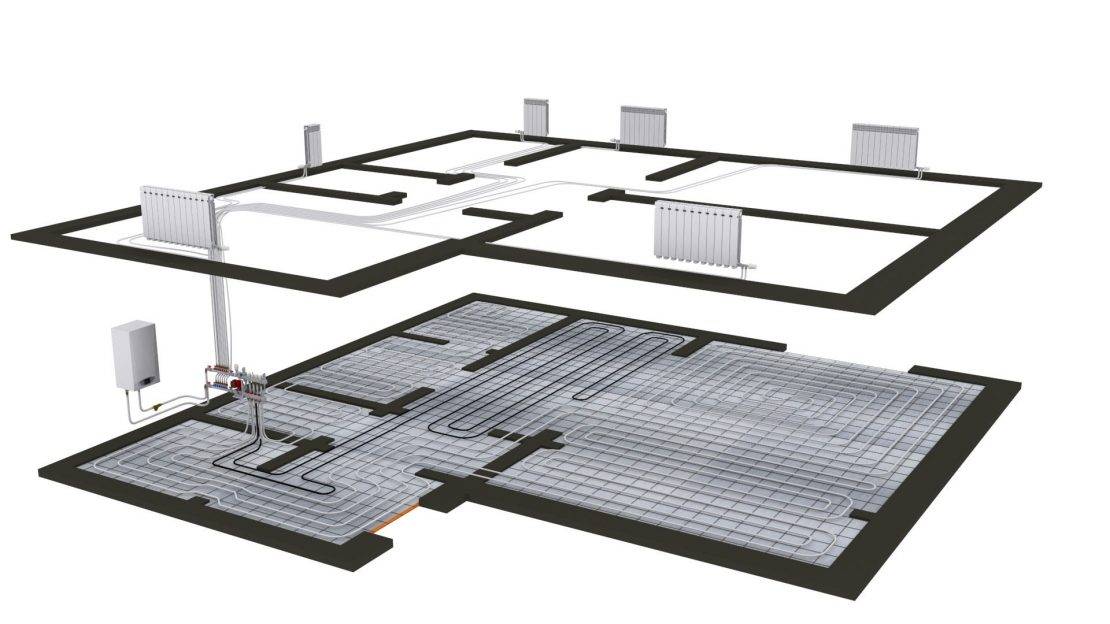 Плюс системы в рациональном расходовании тепла и плавном нагреве всей площади, но если не работает радиаторная сеть, теплые полы не прогреют помещение до нужного уровня.