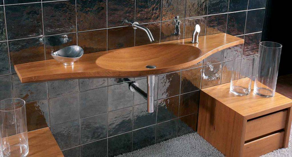 При использовании деревянной модели в ванной, следует подбирать смеситель – вода, из которого не разбрызгивается, чтобы избежать следов от капель. Вариации из бамбука – высокопрочная альтернатива традиционной древесине