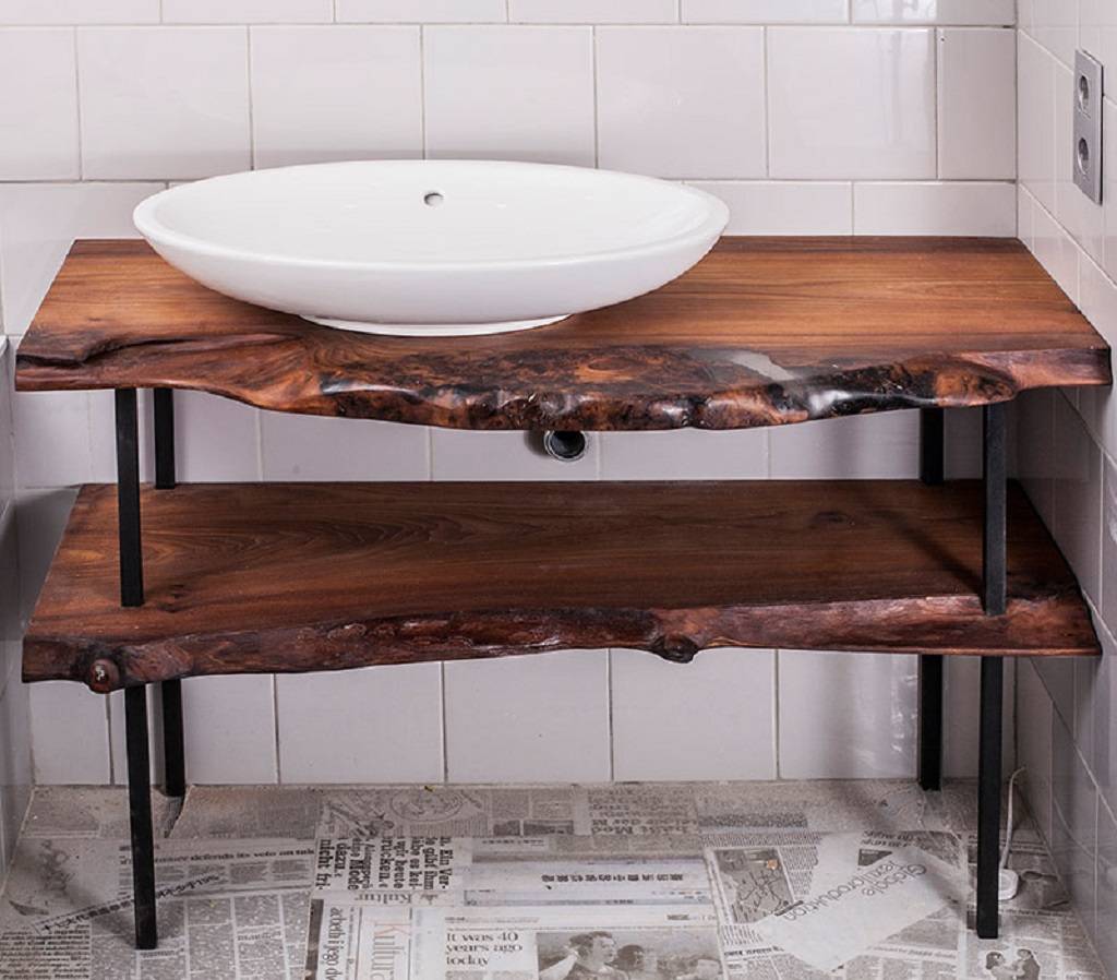 Деревянная столешница наполнит ванную комнату теплом, исходящим от натурального дерева