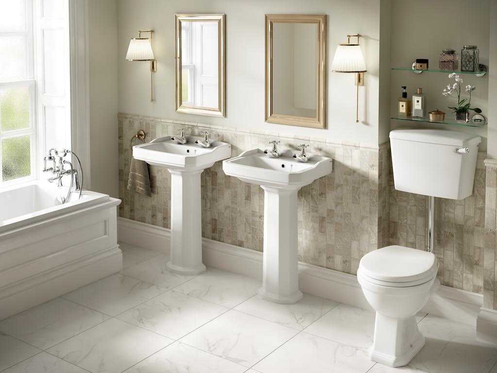 Классические гарнитуры для ванной комнаты включают в себя следующие элементы: