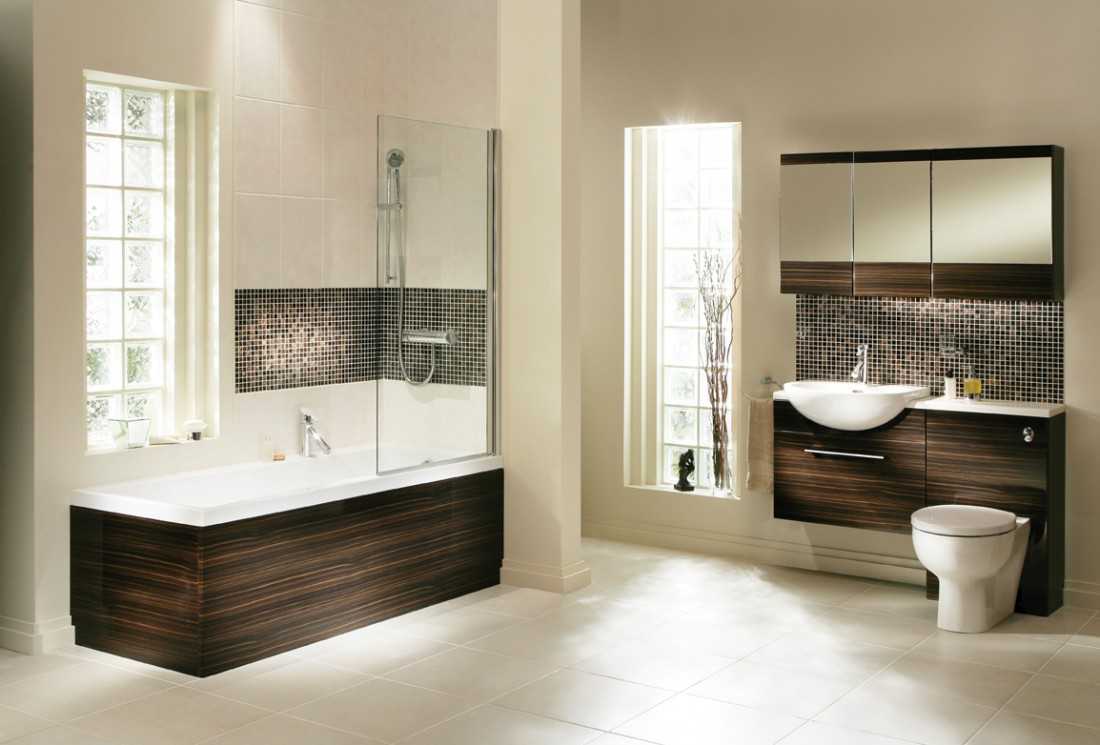 - ванная средних размеров отлично смотрится в теплых тонах и при этом нужно подумать о расстановке: наполнение не должно создавать хаос, потому лучше отказаться от пары аксессуаров, чтобы не перегрузить помещение;