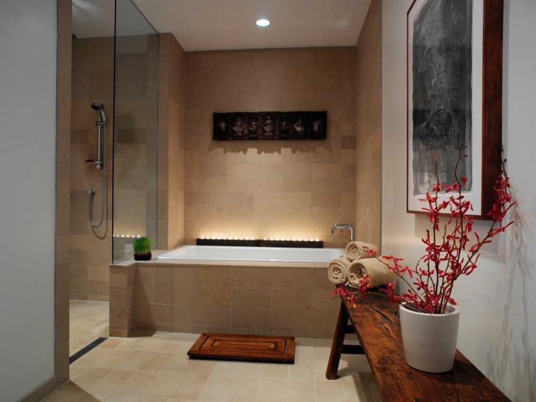 Для этнического стиля подойдёт комплект под бронзу, но никак не выполненный под золото или хромированный набор. Аккуратность и минимализм в современный стиль принесёт встроенный душевой комплект, который по максимуму разгрузит обстановку.