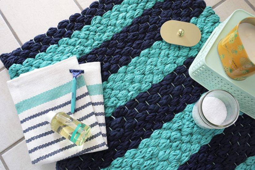 Коврики из пакетов обладают высокой влагоустойчивостью, поэтому их можно положить в ванную комнату, на кухне и в местах с высокой влажностью. Изделие достаточное простое и доступное даже для начинающих мастериц.